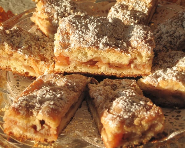 - Sprinkle generously with powdered sugar, before cutting to serving pieces.
