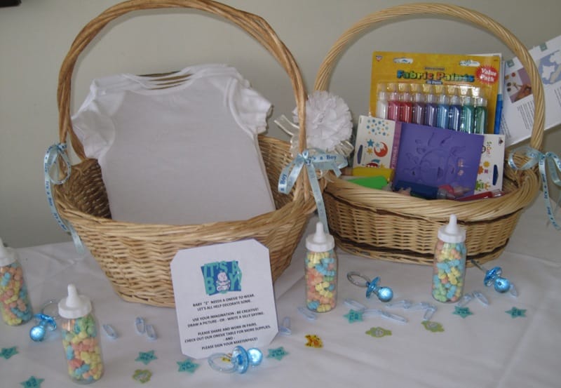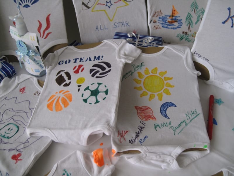 All the decorated Onesies were so adorable, that ALL qualified to be the winners, so the prizes were awarded to the youngest “artists”. This project was definitely lots of fun for everyone. I highly recommend it for your baby shower.