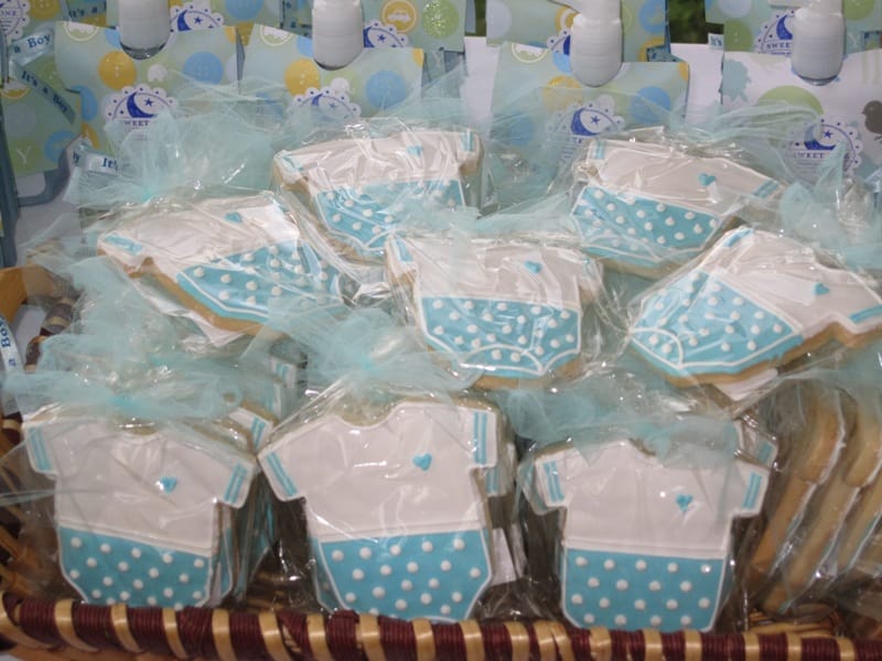 For party favors, there were individually wrapped special baby cookies, in the shape of Onesies, of course.