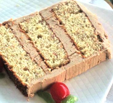 - Use the remaining mocha filling to frost the top and sides of the cake.