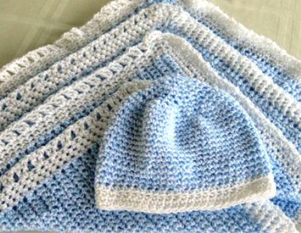 Since this grandson was born at the beginning of a summer season, I did not crochet him any booties, like I did for my other grandson, who was born in the fall, and lives in a cooler climate.