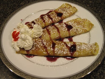 - Serve warm crepes with syrup and whipped cream, side of fresh fruit, or fruit.