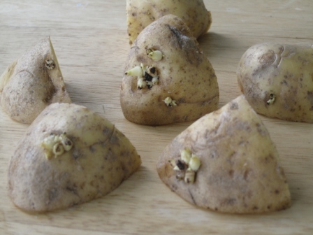 It is very easy to grow potatoes, since all you need is a chunk of a potato, which contains at least 1-2 buds, called eyes, like this one: