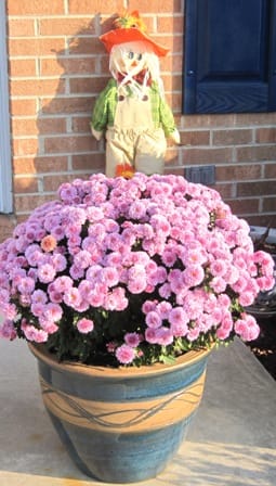 Now I will also show you a picture of a Hardy Mum plant I bought for my daughter and son-in-law, when my granddaughter was born. It was just a regular potted plant, about a foot tall, but look at it now.