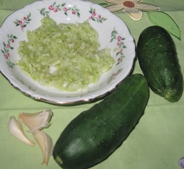 - 1 cup of cucumber, chopped of shredded (one large cucumber-seeds removed, or 2-3 small ones with their small and tender seeds)