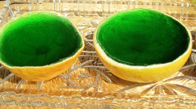 Using the fruit shells for serving jello, eliminates washing the serving dishes. The leftover peel can be chopped up, and thrown into your garden to add acidity to your soil, or shredded in your garbage disposal, to freshen it up.