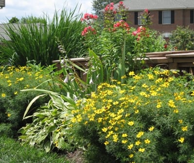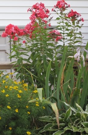 Moondrop Coreopsis, Hosta, Pink Phlox