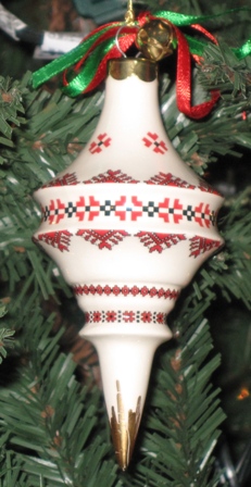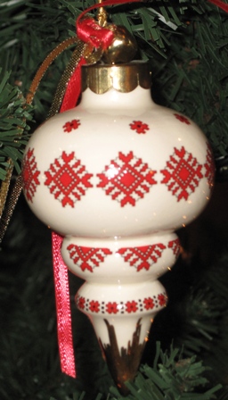 The shape of these two ornaments reminds me of a Ukrainian church dome or steeple.