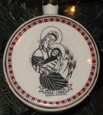 This ornament was created to commemorate the Millennium of Christianity in Ukraine, thus the dates 988-1988.