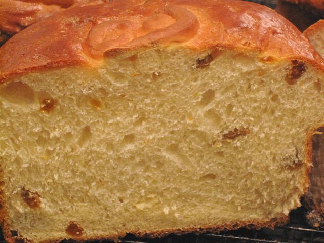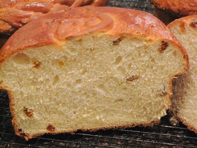 Here is a cross-cut section of our paska bread. As you can see it turned out very light, and fluffy.