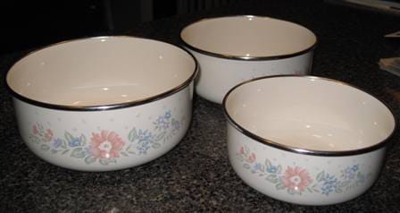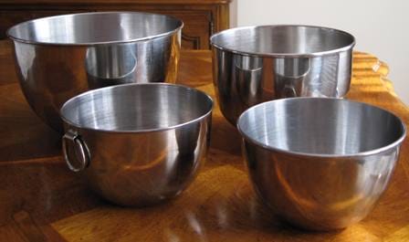 These are stainless steel mixing bowls, which also are great for baking paska. These are larger than the first set, they have thinner walls, and the bottom is not as flat, but still very convenient to use.