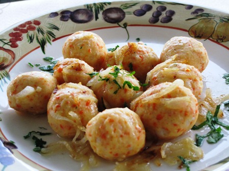 One of the items she cooked often, and I enjoyed very much, are Knedle, or Potato Balls. These are very quick to prepare, require few basic ingredients, and are quite versatile for serving plain with butter and sauteed onions, with tomato sauce, or even filled with fruit and served as an appetizer or dessert.