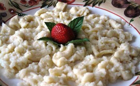 Since posting the recipe for the Polish Strawberry Soup, which was suggested to be served with pasta, I reminisced a little, and remembered my mom’s quick egg drop noodles (Lane Kluski), which she served with her homemade cherry soup, or chicken broth, or even as a breakfast meal served with fruit syrup.