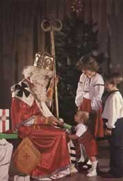 Many immigrant groups brought treasured traditions to Canada; Ukrainians and Dutch are among those who celebrate St. Nicholas. For Ukrainians, Christmas begins with St. Nicholas Day, when young children receive small gifts from their patron saint, Nicholas.Parishes and schools remember Nicholas’ providing dowry money for needy young women by giving small bags of gold-colored coins to children. The children sing to welcome the saint, louder and more enthusiastically as they wait. The saint, on foot or by sleigh, comes dressed as a resplendent Byzantine bishop, accompanied by a troupe of angels. The angels help distribute goodies and small gifts.