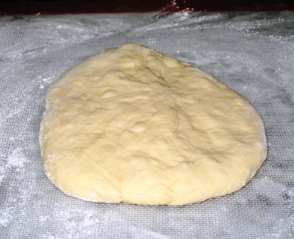 - Place one half of the dough onto a floured work area, and knead it for a minute. I love working with the dough on a Silicone Silpat.