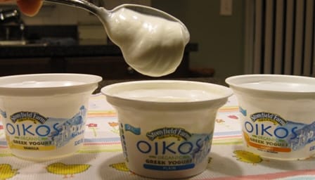 | Taste and texture | Very thick and creamy | Half the thickness of Oikos | Smooth but less creamy, and much thinner texture |