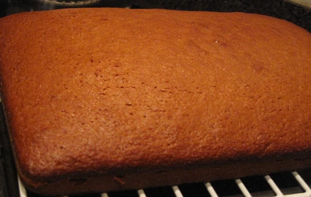 - Grease and flour two loaf pans, or a 9 x 13 sheet cake pan (I use the sheet cake pan).