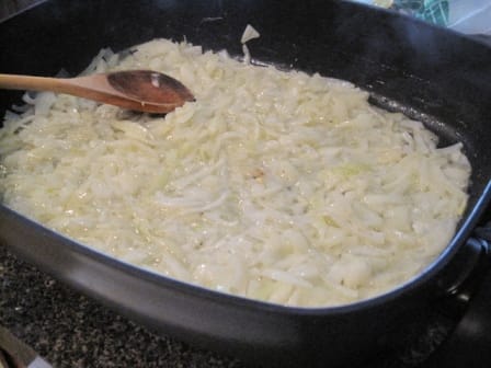 - In a large skillet, sauté onions in 1/2 cup of butter, until transparent.