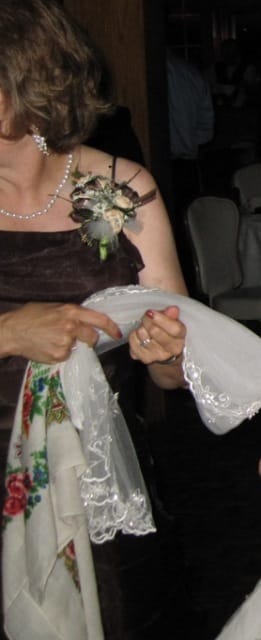 This ceremony also included a Jewish wedding tradition, the presence of the Huppah (also known as Chuppah), which consists of a beautiful lace canopy suspended from 4 decorative posts. The Bride and Groom were standing on a Ukrainian embroidered scarf (rushnyk), under the Huppah, throughout the wedding ceremony.