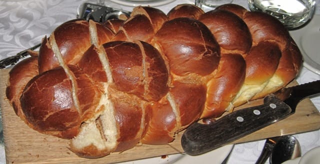 Since the reception of this wedding took place on a Saturday, which is a Jewish Shabbat day, hence at sundown the Father of the Groom picked up the Challah, a traditional Jewish bread, and with a special chant, he greeted all the guests and the Bride and Groom. Afterward, the bread was cut up and served to family and friends.