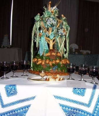 greeting-table-settingJune is a very popular month for weddings, at least in the United States.   I  have attended many weddings with various traditions, but if you ever attended a Ukrainian wedding, you can attest to the fact that there is lots of food, a myriad of decadent desserts, special bread (Greeting Bread and Korovai) in addition to the Wedding Cake, and lots of dancing, to most likely very fast beats of a Ukrainian live band.