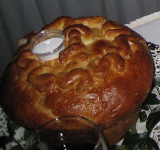 There was a beautiful Greeting Table display, with the Greeting Bread, the Korovai, Holy Icon, and wine.