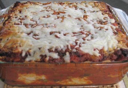 Today I will share another recipe from Andi, for Vegetarian Matzoh Lasagna, which she prepares for their Passover gathering.